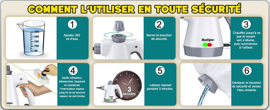 🤝 Accessoires Complets & Service Fiable – Le nettoyeur vapeur Rolipo est livré avec 12 accessoires, dont : buse courbée, tuyau pliable extensible, 4 brosses (dont brosse en laiton), accessoire textile, raclette pour portes/fenêtres et autres outils. Tout pour obtenir un résultat de nettoyage optimal. Notre équipe de service reste disponible pour répondre à toutes vos questions.