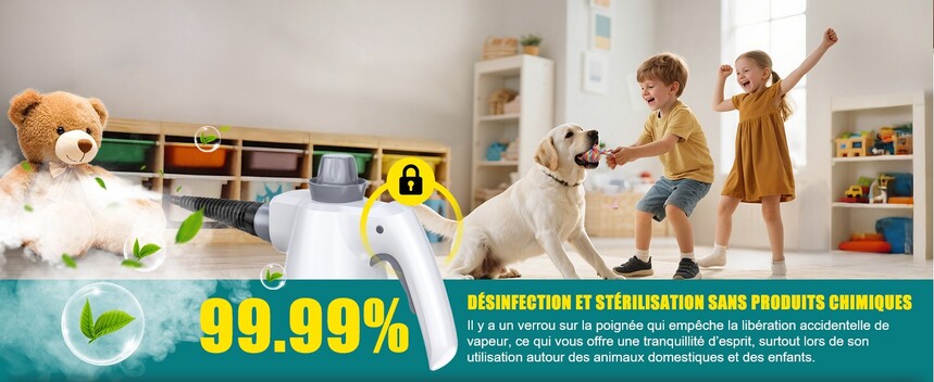 💧 Sûr & Naturel – Fonctionne uniquement à l’eau, sans produits chimiques, vapeurs toxiques ni résidus. Idéal pour un ménage plus écologique et sûr pour les enfants et les animaux domestiques. Équipé d’un verrou de sécurité et d’un capuchon de protection, pour une utilisation totalement sereine au quotidien.
